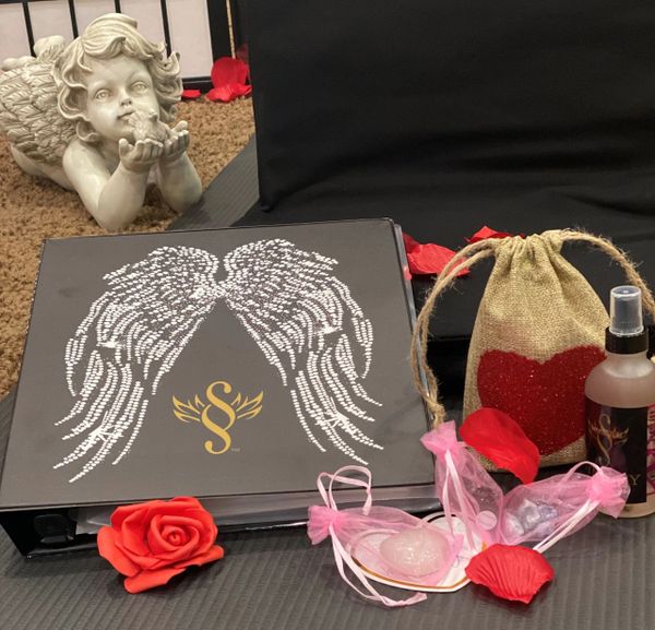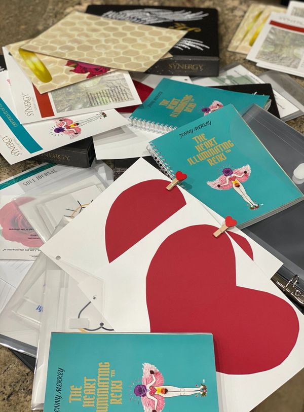 Get ready for a treasure hunt surprise! Unveil a yoga mat, a cozy floor chair, snuggly blankets, and a fluffy tuft. As you dig deeper, discover a name tag, an eye mask, and a fashionable binder. Dive into the binder adventure to stumble upon a feather, a cardstock Sacred Symbols guide, a special created pen, a designed journal, and a mind-blowing 200-page HIR Reiki manual tucked away for safekeeping.
